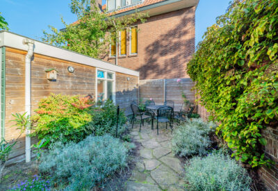 Aan de voorzijde ligt de zonnige voortuin op het zuiden – een heerlijke plek om van een kopje koffie te genieten. De achtertuin ligt op het noorden, maar dankzij de hoekligging is er de hele dag veel zon. De tuin is bereikbaar via een achterom en beschikt over een berging met elektra.