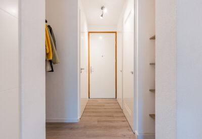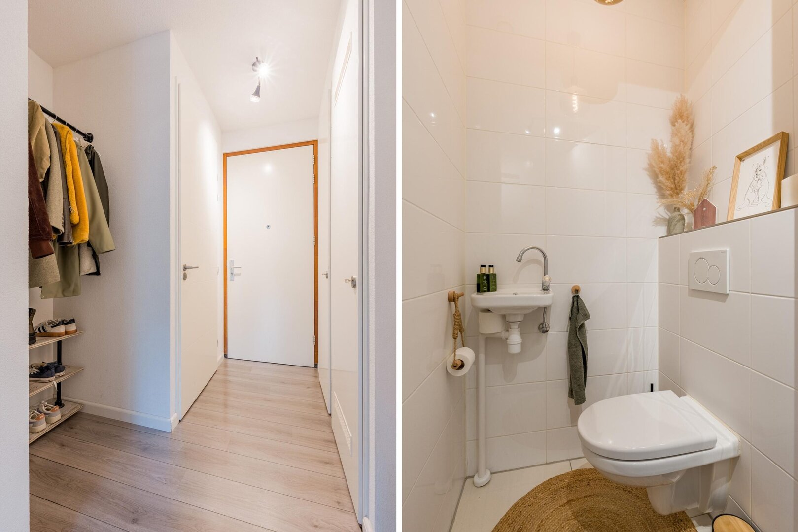 Je bereikt het appartement via de galerij. Direct naast de voordeur bevindt zich de privé (fietsen)berging, een bijzonder praktisch en zeldzaam pluspunt in dit appartementencomplex. Ideaal voor fietsen, kinderwagen, koffers of extra opslag (en alles letterlijk naast je woning).