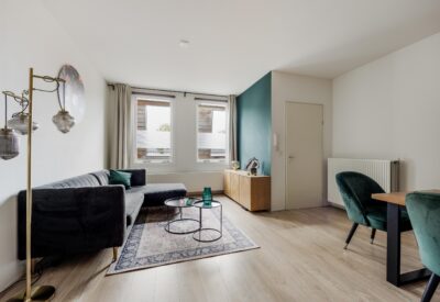 Aan de achterzijde liggen de twee slaapkamers. De hoofdslaapkamer is licht en ruim, met directe toegang tot het zonnige balkon op het zuiden. Een fijne plek om in alle rust te genieten van de middag- en avondzon. De tweede slaapkamer is iets kleiner, maar perfect geschikt als werkkamer of inloopkast. De moderne meterkast is uitgerust met zeven groepen en twee aardlekschakelaars, en biedt voldoende ruimte voor eventuele uitbreiding.