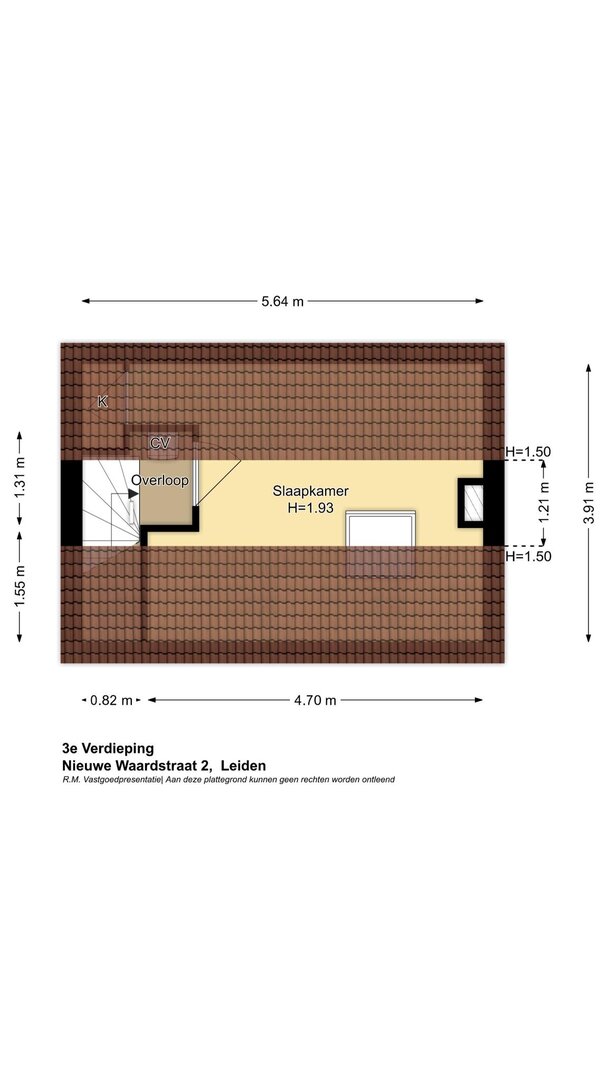 Op deze verdieping bevindt zich een kleine overloop waar zich de cv-ketel bevindt. Vanaf hier is er toegang tot de slaapkamer. Deze is voorzien van een Velux dakraam voor frisse lucht en lichtinval.