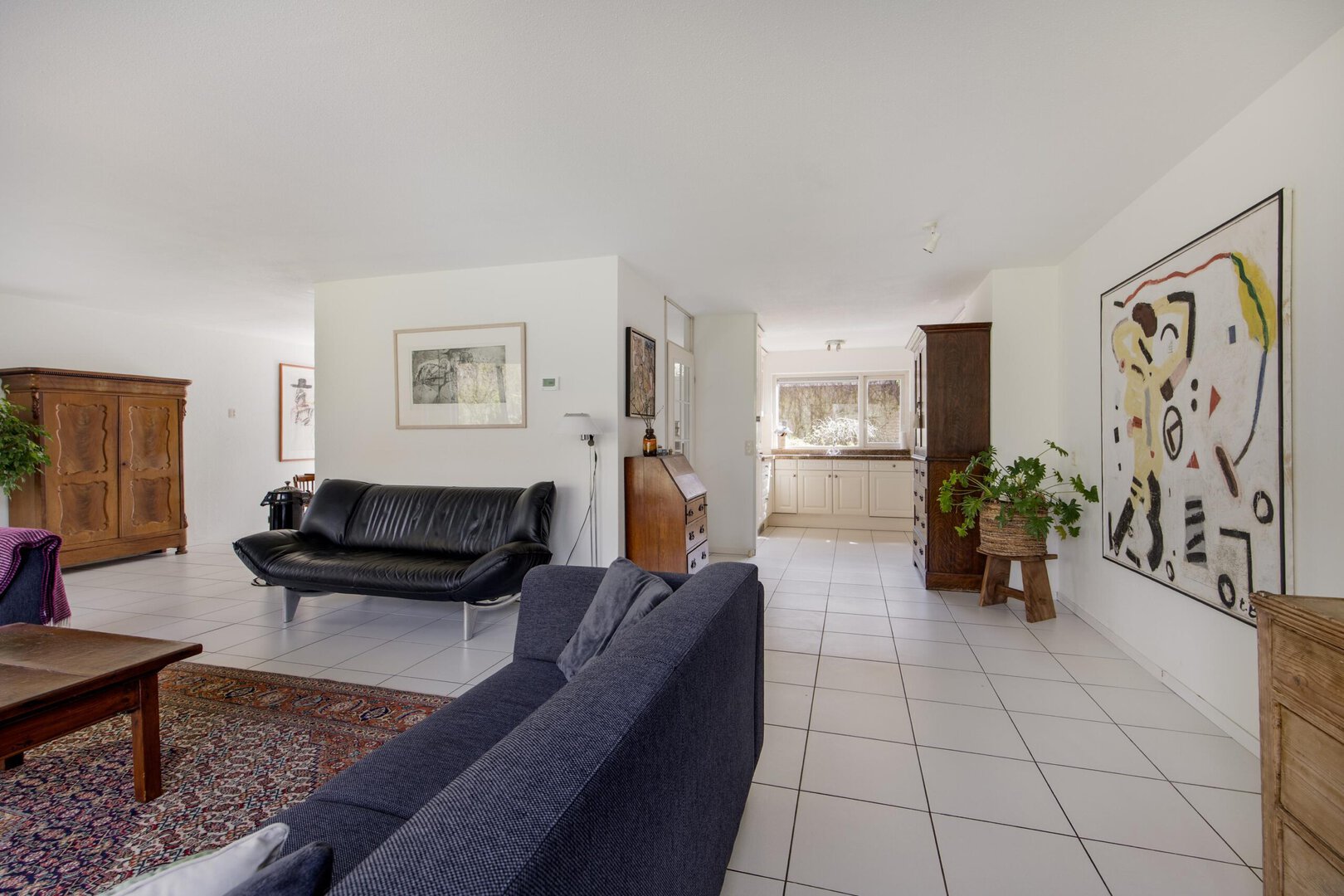 What truly makes this property special is the large plot with unobstructed views. The green garden starts between the garage and the entrance and wraps around the house. Behind the garage there is additional space for storing bicycles.