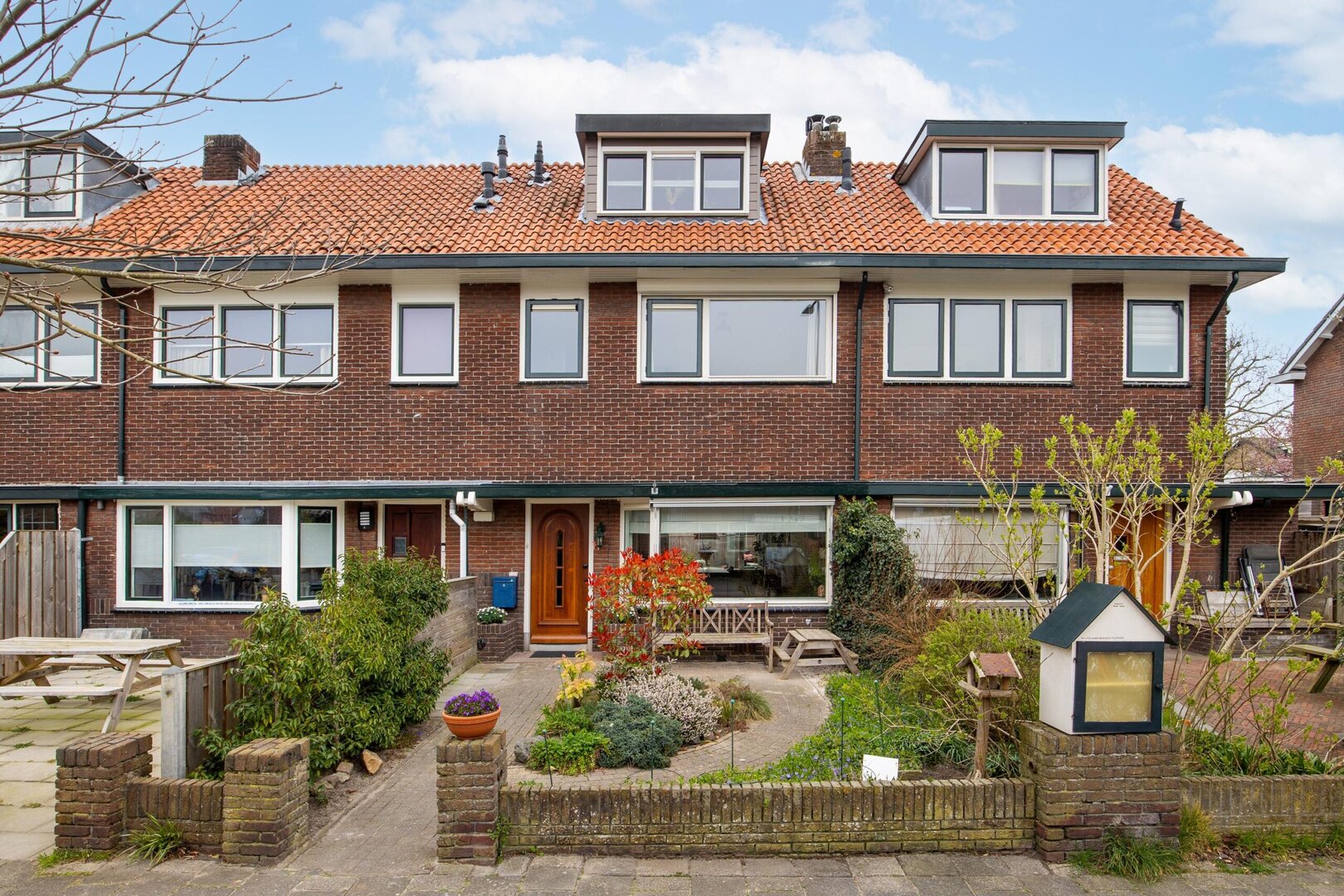 At the front of the property there is a front garden of over 5.5 metres deep, facing southwest, with plenty of greenery and a lovely position for the afternoon and evening sun. The street is very quiet, making the front garden a pleasant place to relax as well.