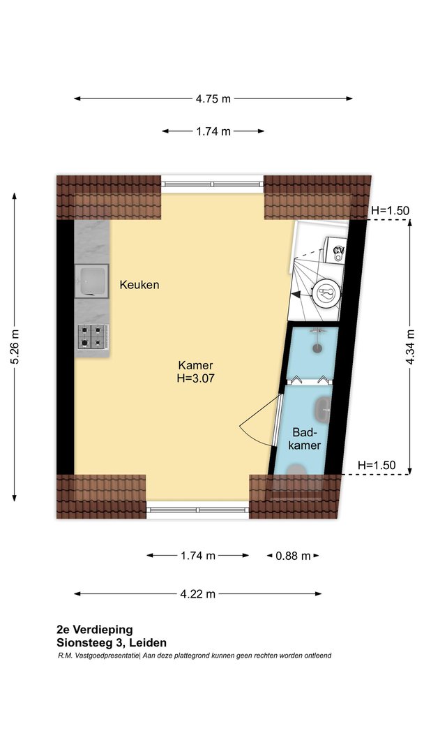 In het centrum van Leiden, verscholen in een rustige zijstraat van de levendige Haarlemmerstraat, ligt deze bijzondere woning aan de Sionsteeg. Het pand, oorspronkelijk gebouwd rond 1850, is in 2002 verbouwd van opslagloods naar woonhuis. Daarbij zijn onder andere dakkapellen geplaatst en is het dak voorzien van isolatie. Later is dit verbouwd naar 3 aparte studentenkamers. Destijds zijn ook de muren geïsoleerd met een voorzetwand. Later is de woning volledig uitgerust met HR++ beglazing. Verwarming en warm water worden geregeld door een cv-ketel uit 2013 en een elektrische boiler.