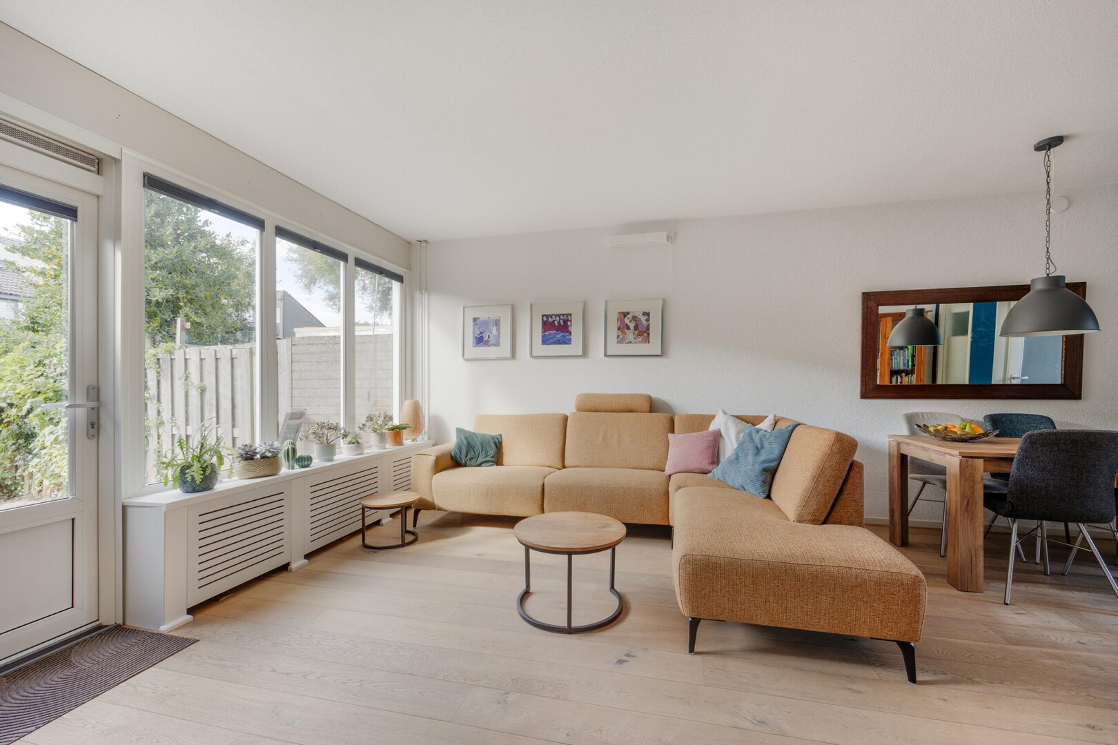 De tuingerichte woonkamer is heerlijk licht en voorzien van een sfeervolle eikenhouten parketvloer. Handig is de trapkast, ideaal voor extra voorraad of schoonmaakspullen. Via de tuindeur stap je zo de achtertuin in.