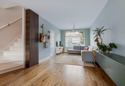 The sunny south-facing garden is located at the rear of the property and includes a wooden shed with electricity. The garden can also be accessed via a back entrance — ideal for safely storing bicycles on your own property.