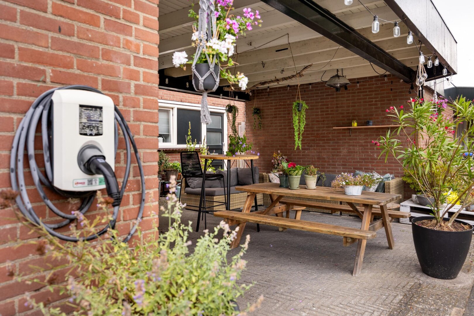 Binnen valt de lichte woonkamer direct op. De openslaande deuren naar de tuin zorgen voor veel daglicht en maken de tuin een verlengstuk van de leefruimte. De open keuken is voorzien van inbouwapparatuur en in de woonkamer geven designradiatoren de ruimte een moderne uitstraling. In de hal vind je een apart toilet, een handige wasruimte en toegang tot de ruime schuur. Deze schuur is ook bereikbaar via de carport, die nu creatief als gezamenlijke loungeplek met de buren wordt gebruikt. Voor elektrische rijders is de meterkast al voorbereid met een zwaardere aansluiting voor een laadpaal.