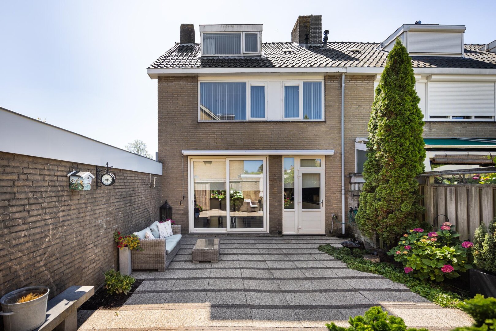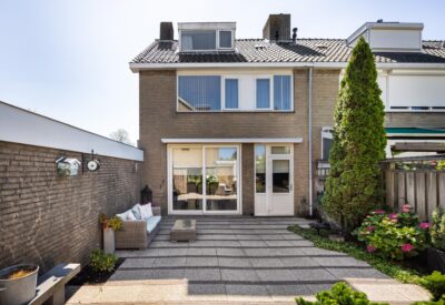 Centrally located in Leiderdorp, we are offering this corner house on a spacious plot of 211 square meters, with an optional garage for sale. These types of homes are wonderfully spacious and solidly built. For example, they already feature concrete floors, making them much less noisy compared to older types. It’s a through-living-room style house, so it’s bright and airy thanks to the generous internal width of over six meters. The usable living area is 128 square meters, and there are four spacious bedrooms. The house is partly fitted with plastic window frames, but all windows are double-glazed. Shopping centers De Santhorst and Winkelhof are just a few minutes away by bike. Several primary schools and childcare facilities are located nearby. The center of Leiden can be reached within a good ten-minute bike ride. Layout: Ground floor: Entrance to the house. Hallway with meter cupboard, storage closet, staircase to the upper floor, understairs cupboard, and toilet. The living room is wonderfully spacious and very bright due to windows on three sides. A sliding door in the rear facade leads to the back garden. The kitchen is also at the rear of the house and has an L-shaped layout in high-gloss white. There’s ample cabinet space and a pull-out pantry. The kitchen is equipped with the following appliances: gas hob, extractor fan, fridge, combi oven, and dishwasher. There is also a door from the kitchen to the backyard. First floor: Spacious landing with access to all rooms. At the front, there is a large bedroom and the bathroom, which features a shower, toilet, and washbasin. At the rear of the house, there are two more well-sized bedrooms. Second floor: Landing with washbasin, central heating boiler, and connections for washing machine and dryer. Under the slanted roof, there is a storage area currently used as a walk-in closet. Also on this floor is the fourth bedroom, which has windows on both the front and rear sides. Garden: At the front of the house is a large garden that extends to the right side of the property. Facing southeast, it gets sun from early in the morning. The sheltered backyard faces northwest, offering afternoon and evening sun. At the back of the garden is a brick shed with electricity. Next to the shed is a covered area. The backyard can be accessed via a back entrance. Next to the house is a row of garages. The garage can optionally be purchased for an additional price and could be made accessible from the garden. Additional details: Usable living area: 128 m² External storage space: 8 m² Volume: 432 m³ Year of construction: 1969 Four spacious bedrooms (fifth possible) All floors finished with laminate Electrical system: Six circuits with earth leakage switch Heating and hot water via high-efficiency combi boiler (year 2025) Free parking in the immediate vicinity Asking price for garage: €49,000 (costs payable by buyer)