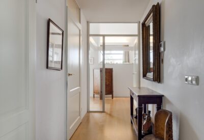 Via de nette gezamenlijke entree met brievenbussen, lift en trappenhuis bereikt u de vierde (en bovenste) verdieping. Hier bevindt zich uw privéverdieping met een eigen voordeur en een royale ontvangsthal.