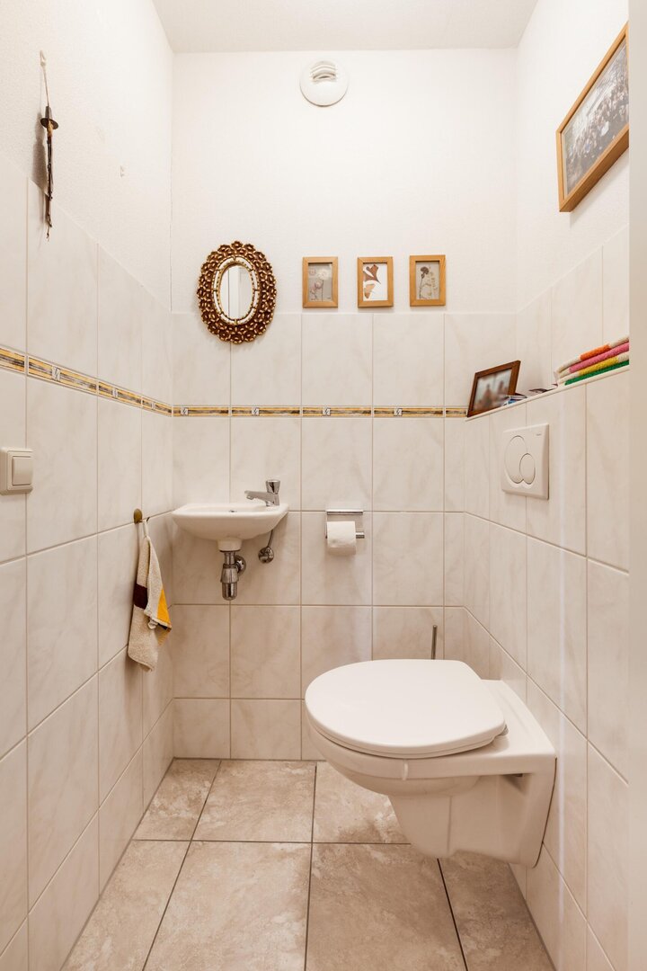 Bij binnenkomst komt u in een ruime hal die toegang biedt tot diverse vertrekken. Hier bevindt zich ook een praktische wasruimte met aansluitingen voor wasmachine en droger, volop bergruimte voor voorraad en de opstelling van technische installaties zoals de mechanische ventilatie. In de hal vindt u een kast met de verdeler van de stadswarmte en tevens een aparte toiletruimte en een garderobe.
