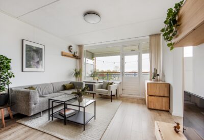 Via de galerij is het appartement te bereiken. Via de voordeur is de hal te bereiken met daar de meterkast en een vaste kast. Aan de voorzijde van het complex is de keuken te vinden (2021). Deze is in U-vormige opstelling en voorzien van de volgende inbouwapparatuur: koelkast, vriezer, gaskookplaat, afzuigkap, vaatwasser, oven en een magnetron. In de keuken is er naast veel kastruimte ook de aansluiting voor de wasmachine. De woonkamer is aangrenzend aan de keuken en deze is heerlijk licht door de grote ramen. In de woonkamer is er een deur naar het balkon. Het balkon ligt op het zuidwesten. Met gedurende vrijwel de gehele dag en avond zon. Het balkon is afgewerkt met een grote keramische tegel. Naast de woonkamer ligt de eerste kamer die aan de balkonzijde ligt. Deze kamer heeft momenteel geen deur, maar hier zou eenvoudig een kozijn met deur in geplaatst kunnen worden. De tweede en derde slaapkamer zijn vanuit de hal bereikbaar. Dit geldt ook voor de badkamer die vernieuwd is in 2021 en voorzien is van een inloopdouche, wastafel en toilet.