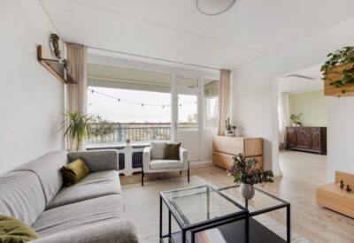 Op een leuke locatie in Leiderdorp ligt dit vierkamer hoekappartement op de derde verdieping. Net hoog genoeg om over de daken van de omliggende woningen heen te kijken, maar laag genoeg om nog wel contact te hebben met de straat. Door de vele ramen is het appartement heerlijk licht. De woonkamer is ruim en heeft een open keuken. Er zijn verder nog drie slaapkamers, moderne badkamer, balkon op het zuidwesten en een berging op de begane grond.